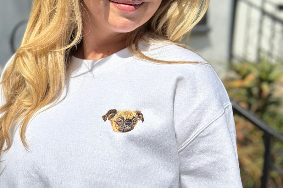 Stay cozy and stylish with a personalized embroidered crewneck featuring your lovable pet.