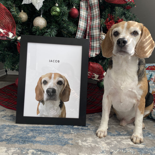 Add your pet's name, choose a frame style and background, and pick the perfect size.