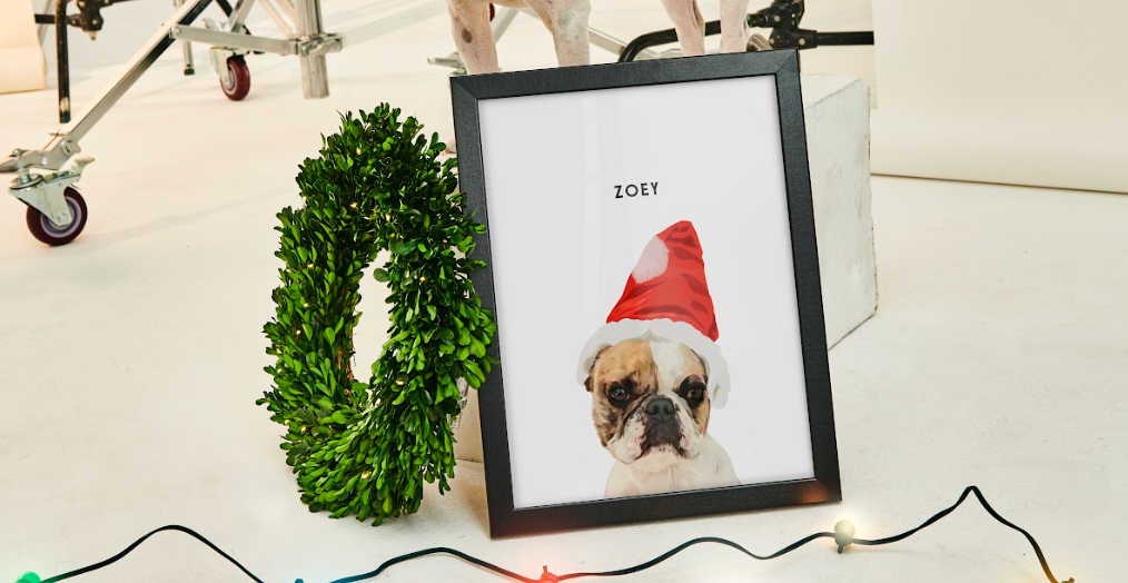 Add your pet's name, choose a frame style and background, and pick the perfect size.