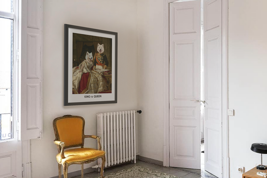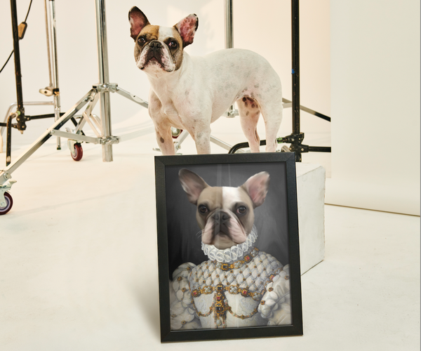 Add your pup's name, customize the royal portrait style, and choose your frame & size.
